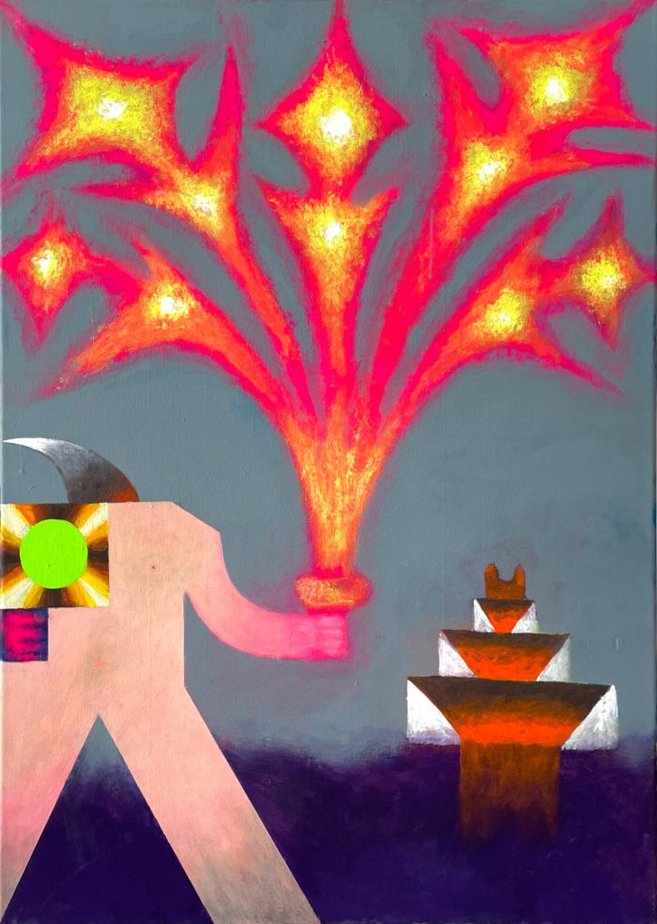 Après une résidence à Paris en 2023, Thibault Gaudry installe son atelier dans les montagnes ariégeoises. Ce changement d’environnement, lui fait prendre conscience de sa propre altérité : « Si je n’étais pas peintre je serai bandit ». Il produit alors une série de peintures d’assaillants.