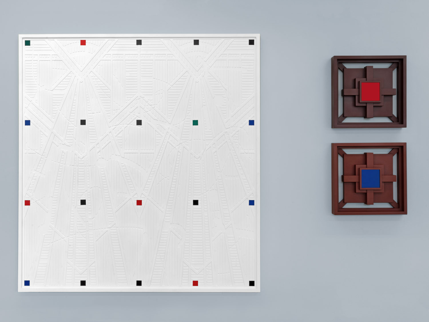Scénographe de formation, elle génère dans un entrelacs de lignes et de reliefs légers des espaces mentaux. Les surfaces se feuillettent, s’ouvrent dans l’espace du mur.